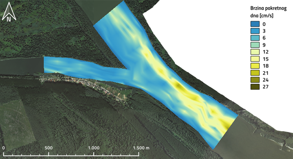 ADCP and GPS data post-processing estimate bedload velocity as indirect bedload intensity indicator.