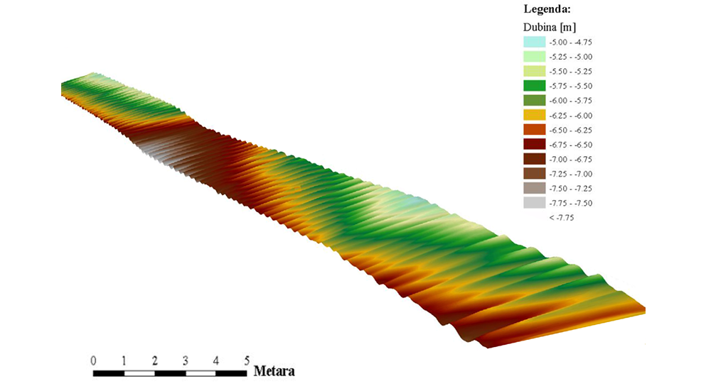 Post-processing of georeferenced bathymetric maps results in estimation of dune celerity.