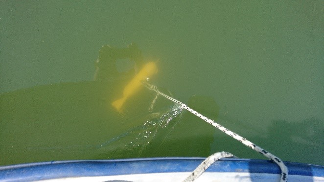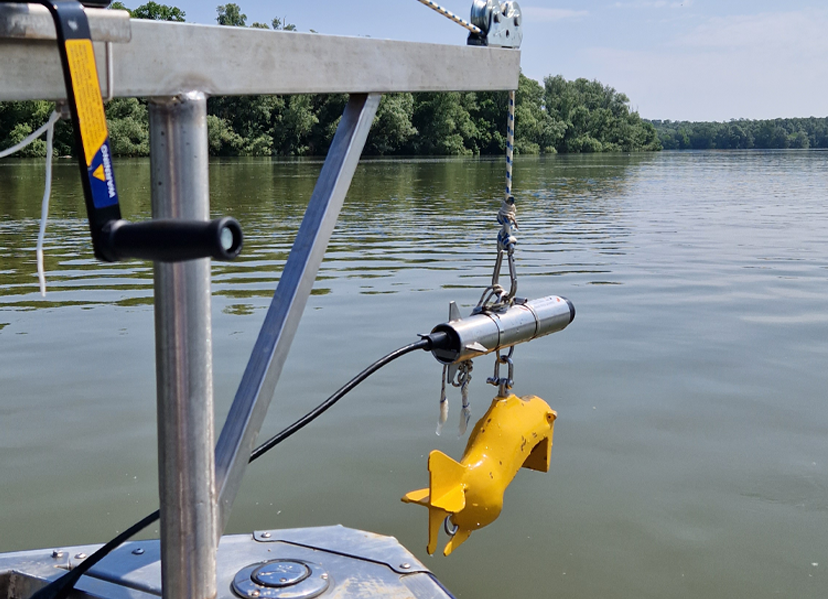 Uređaj se uranja u rijeku na fiksnu poziciju ispod brodice tako da je glava uređaja okrenuta u smjeru toka rijeke
