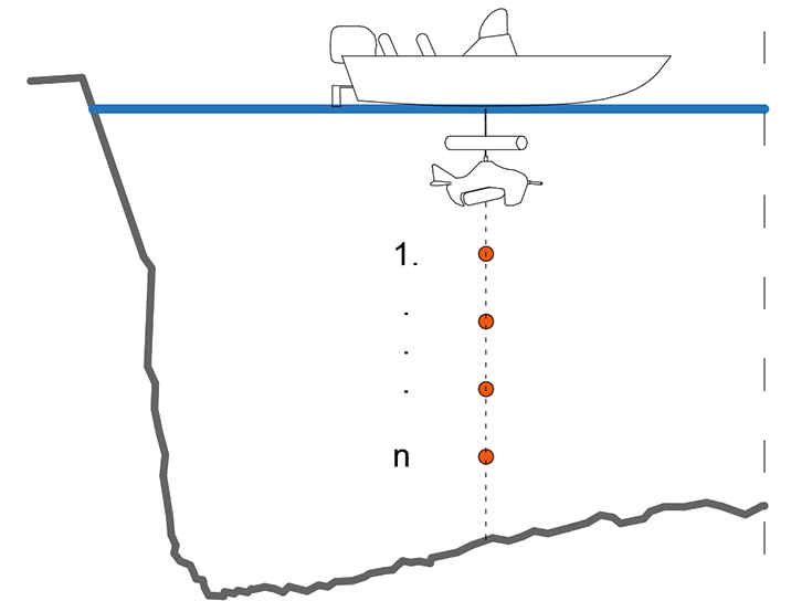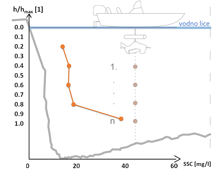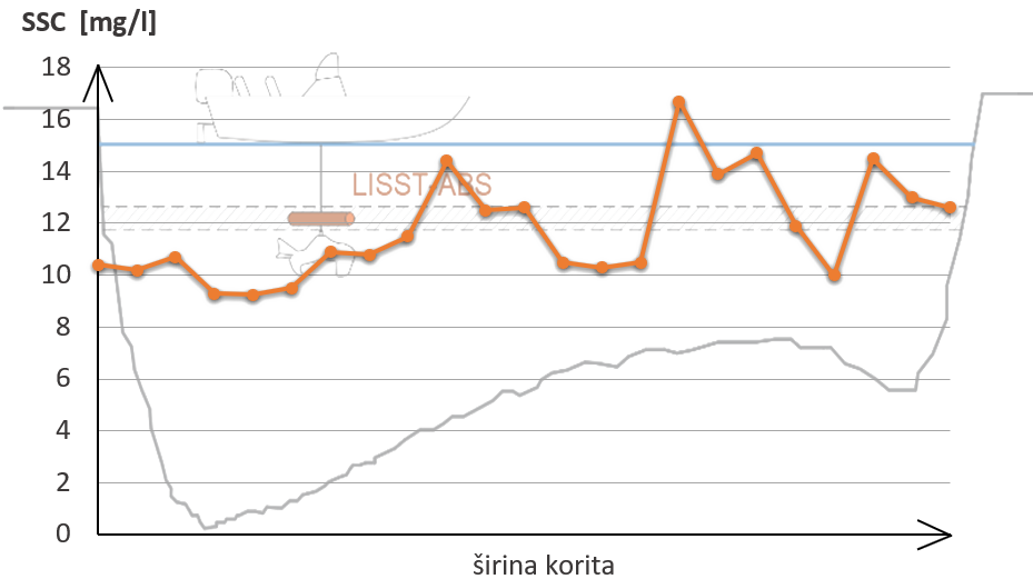 Tijekom preplova riječnog profila, bilježe se koncentracije suspendiranog nanosa duž jednog sloja poprečnog profila