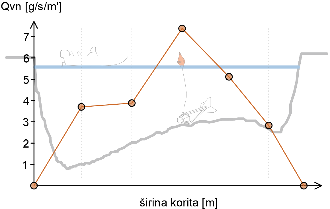 Rezultat uzorkovanja vučenog nanosa je jedinični pronos vučenog nanosa duž riječnog profila.