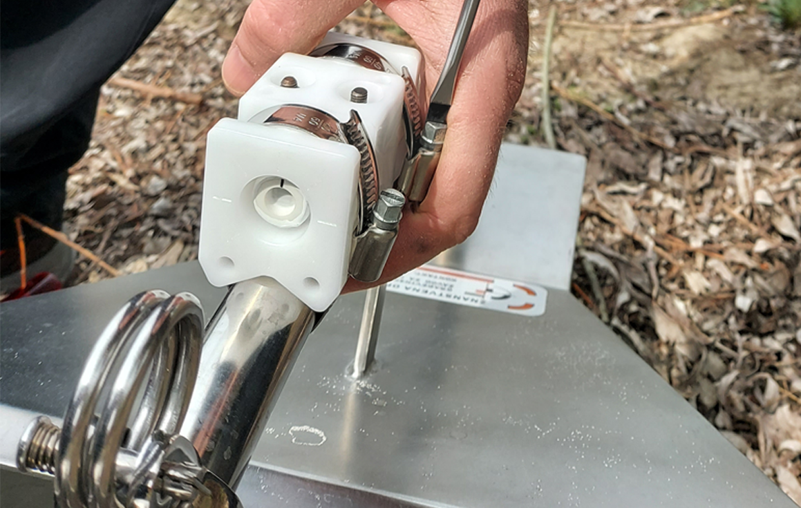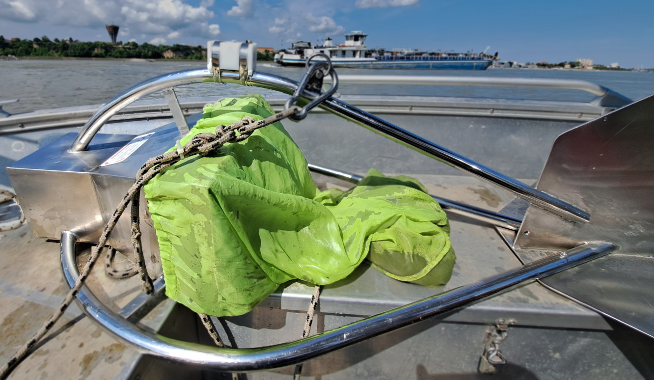 Hvatač se spušta na riječno dno i tam ostavlja određeno vrijeme dok se vučeni nanos ulazi u vodopropusnu vreću.